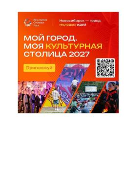 Новосибирск—молодой город-миллионник, полный энергии и креатива! Поддержим город в голосовании за культурную столицу Здесь молодёжь создаёт культурные события: от уличного искусства до фестивалей и открытых кинопоказов, делая город живым и вдохновляющим